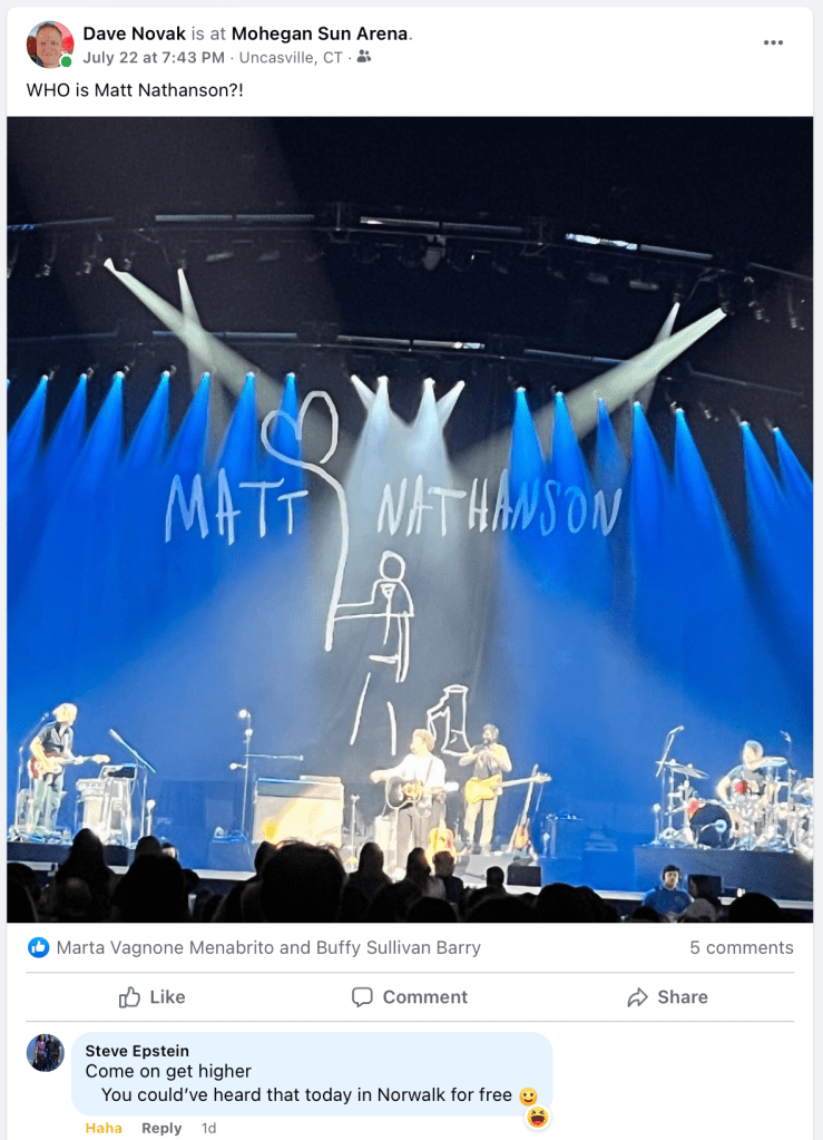 That was the question I posed to my Facebook friends the other night when when we went to see Matchbox Twenty Saturday night at Mohegan Sun and Mr. Nathanson’s band was the opener.